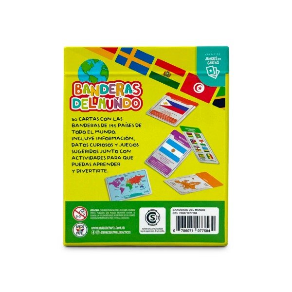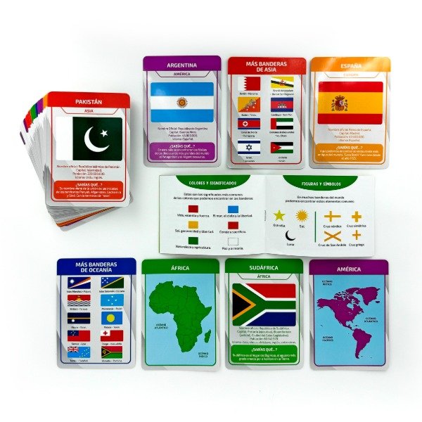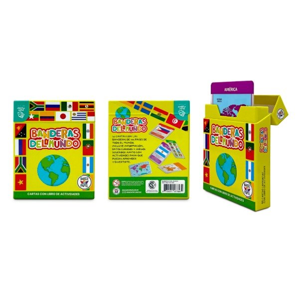 El Mazo de Cartas Banderas del Mundo de Barco de Papel invita a los chicos a descubrir la diversidad de países y continentes mientras aprenden sobre geografía y cultura. Cada carta presenta una bandera con información básica del país, datos curiosos y referencias sobre su ubicación. Una manera divertida y educativa de explorar el mundo, ideal para casa o la escuela. Incluye un libro de actividades exclusivo para seguir aprendiendo jugando.